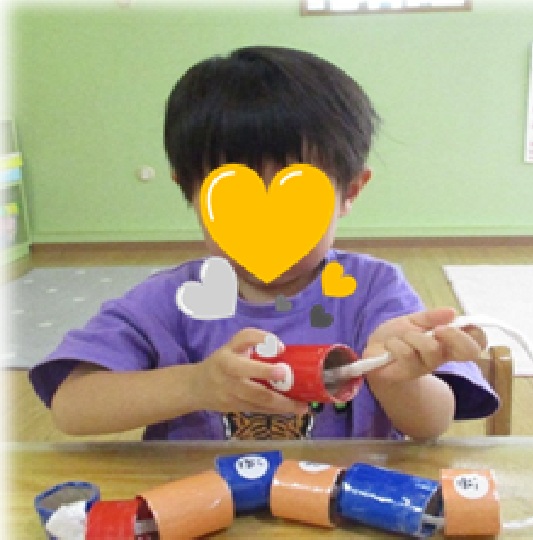 言われると物を別の物の中に上下に置く課題では、何の上下に置くかはっきりとした口調で伝えることで指示を聞き取り、机やままごとの冷蔵庫等、様々な物の上下に宝石を置くことができました。
