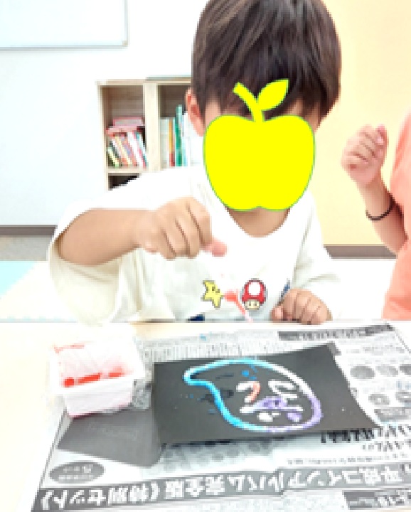 ソルトアート、スポイトで絵の具を垂らして仕上がりが楽しみ!