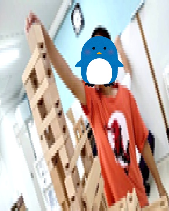 余暇の時間には積み木を使ってビー玉を転がすコースを作っています。複雑な順路を考える発想力とそのコースを作り上げる器用さにいつも驚かされています。