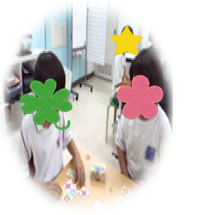 自らお友だちを誘って積み木でコースを作って一緒に遊ぶ姿が見受けられています。課題では心配な気持ちを落ち着ける方法として「深呼吸をする」と意見を発表できていました。