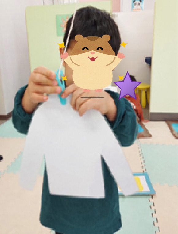 絵合わせゲームや洗濯干しゲームをして楽しみました。絵合わせゲームでは、「ちがう」等と周りをキョロキョロ見渡して、合わせると絵になるカードを見つけ出す事が出来ました。