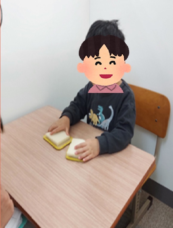 洗濯干しゲームでは、ニコニコしてどこの洗濯ばさみに付けるか迷いながら、上手につける事出来ました。挟む事が出来るととても満面の笑みで先生の方を見ていました。 今月は『手触りの同じ物を照合する』『聞かれると多い少ないを区別して指す』課題を頑張りました。ふわふわしたスポンジ、つるつるしたアルミの素材などいろいろな感触を手で感じてもらいました。言語表出やスプーンも引き続き頑張っています。
