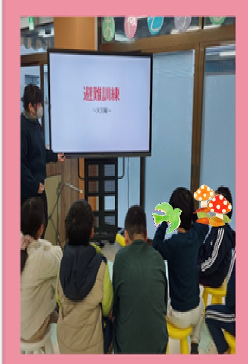 災害についての話を聴き、防災についての知識を深めてから「おはしも」の合言葉をお友だちと一緒に復習することができました。今回は火災を想定し、口元を覆う等のお約束も再確認してから実際にこんこんの外へお約束を守って避難することができました。 災害についてのクイズにも積極的に挑戦し、何度も解答を発表しようとする姿が見られました。今月のSSTでは『自分の考えをはっきりと話す』をテーマに、お友達に自分の物を取られたり、意地悪された時の対処について話合いました。話合いの後、ロールプレイでお友達からボールを取られた場合にどうするか練習をすると「やめて、返して」と伝えた後「ボールで一緒に遊ぼう」とお友達を誘う心の広さを見せてくれました。